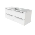 A contemporary styled wall hung design to complete your new bathroom. High quality water resistant panelling with integrated handles and soft-close drawers.